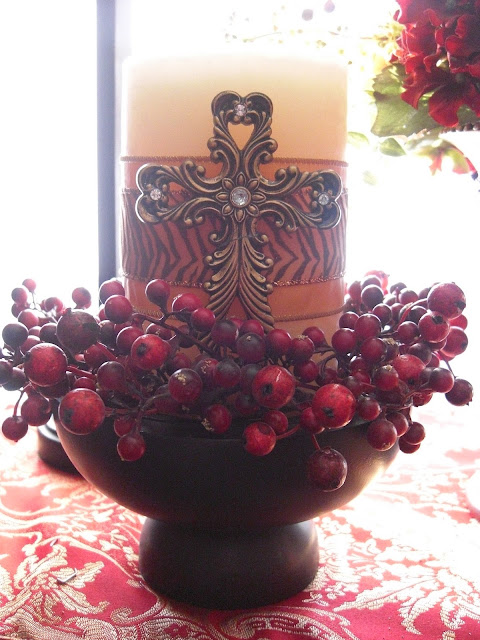 I added a mosaic candle and ornament candle garland to the candlestick.
